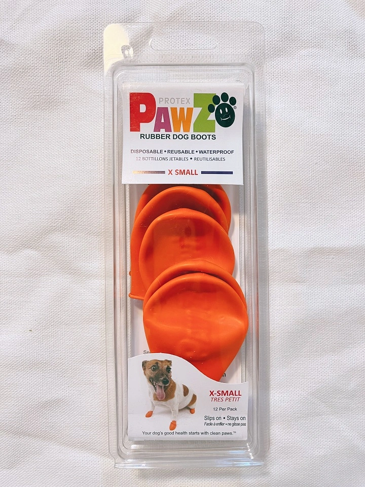 제가 구매한 사이즈는 XS 사이즈입니다. 퍼그, 푸들, 시츄 등 소형견 전용 사이즈로 안내되어 있는데요. 착용해 보니 몸무게 대략 5kg 정도 되는 발바닥 살짝 두툼한 소형견에게 적합합니다.